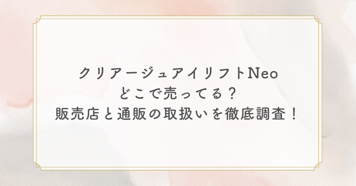 この記事では、クリアージュのアイリフトNeoがどこで購入できるのかを調査しました。