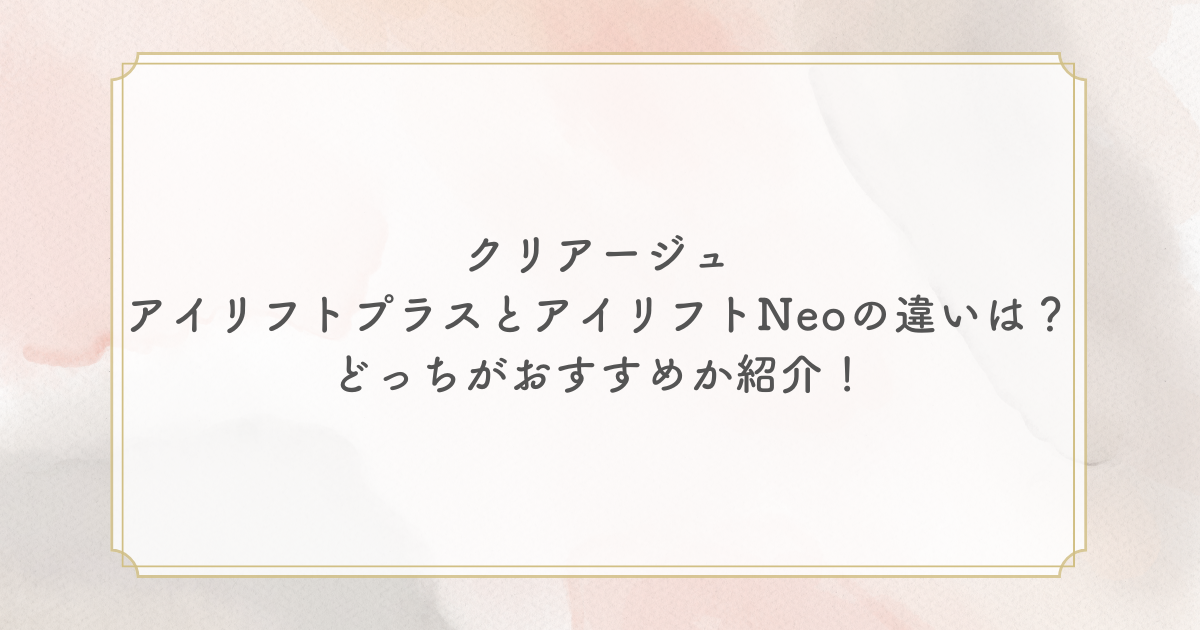 この記事では、クリアージュアイリフトプラスとネオの違いを比較し、どっちがいいのか分かりやすく解説します。
