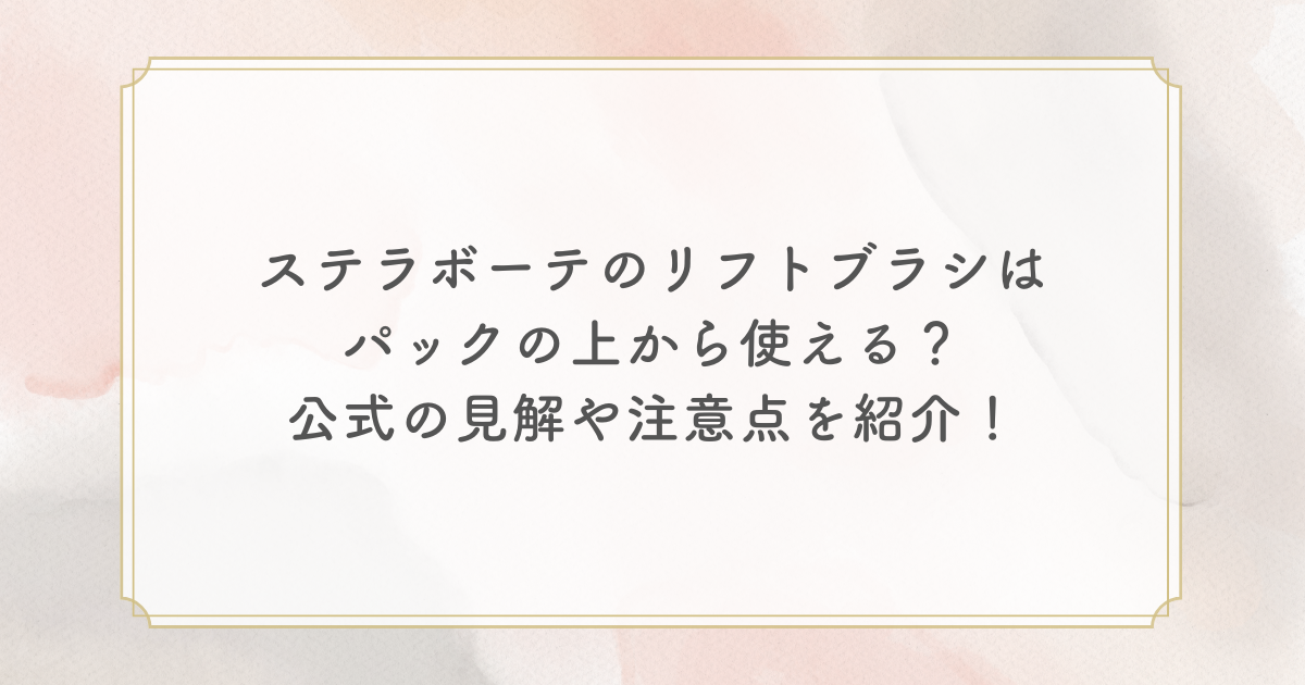ステラボーテリフトブラシは、その高い美容効果から多くの人に愛用されていますが、「パックの上から使えるかどうか」という点については注意が必要です。